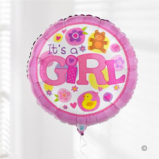 Prompt a smile with this pretty balloon, perfect for adding some fun whilst celebrating their new arrival. The pink and white ‘baby girl’ design features a flower in the centre and a cute gingham style border. The 45cm micro-foil balloon arrives filled with helium and tied to a weight with curling ribbon.