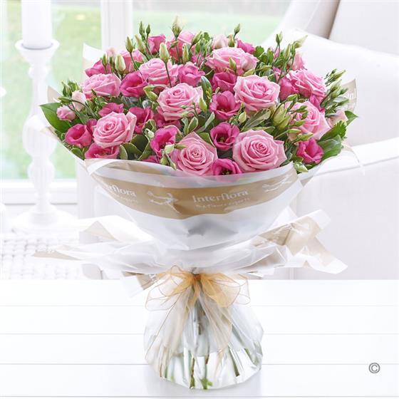 Indulge her passion for pink with this ultra-feminine bouquet. We’ve chosen classic roses for their enduring beauty and delicate lisianthus for extra detail. The soft pink shades of both varieties look wonderful together and are sure to prompt a smile of pure pleasure.