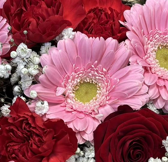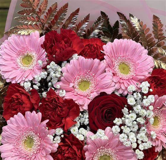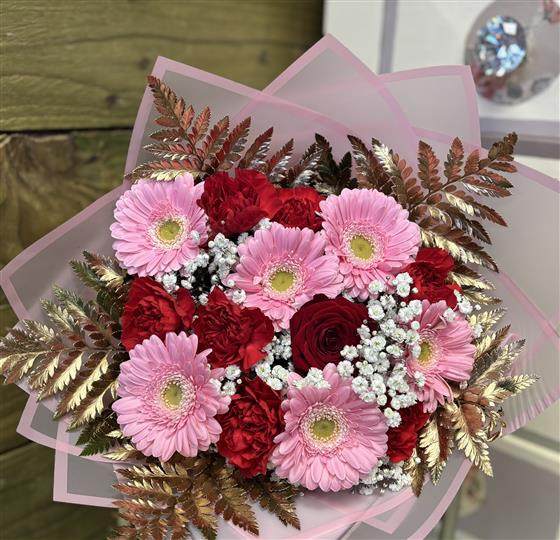 This bouquet features the contrasting colours of pink and red for something unique. Also new to our Princess Collection